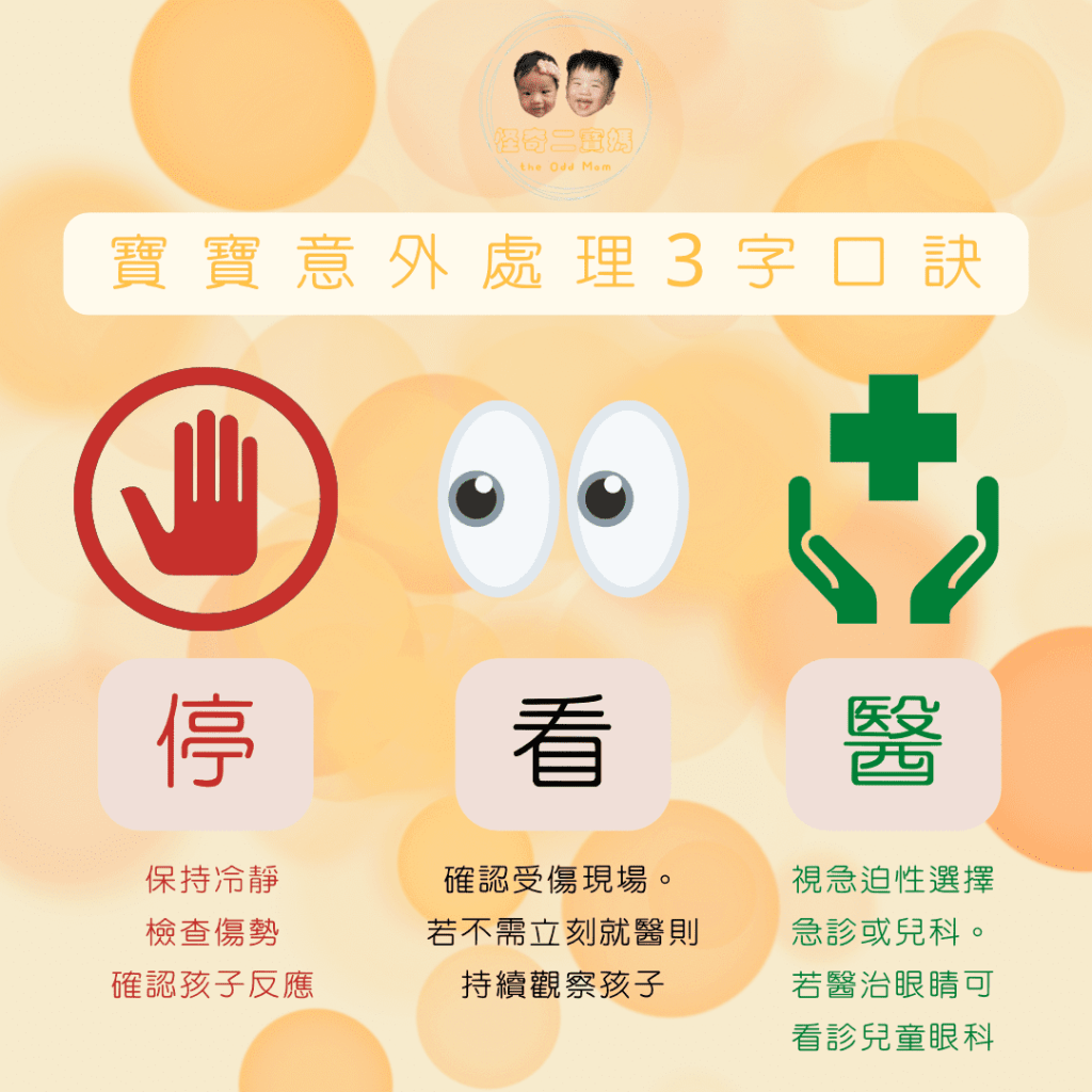 總結這次經驗,怪媽我認為在應對孩子意外發生時有以下 4 個步驟:
