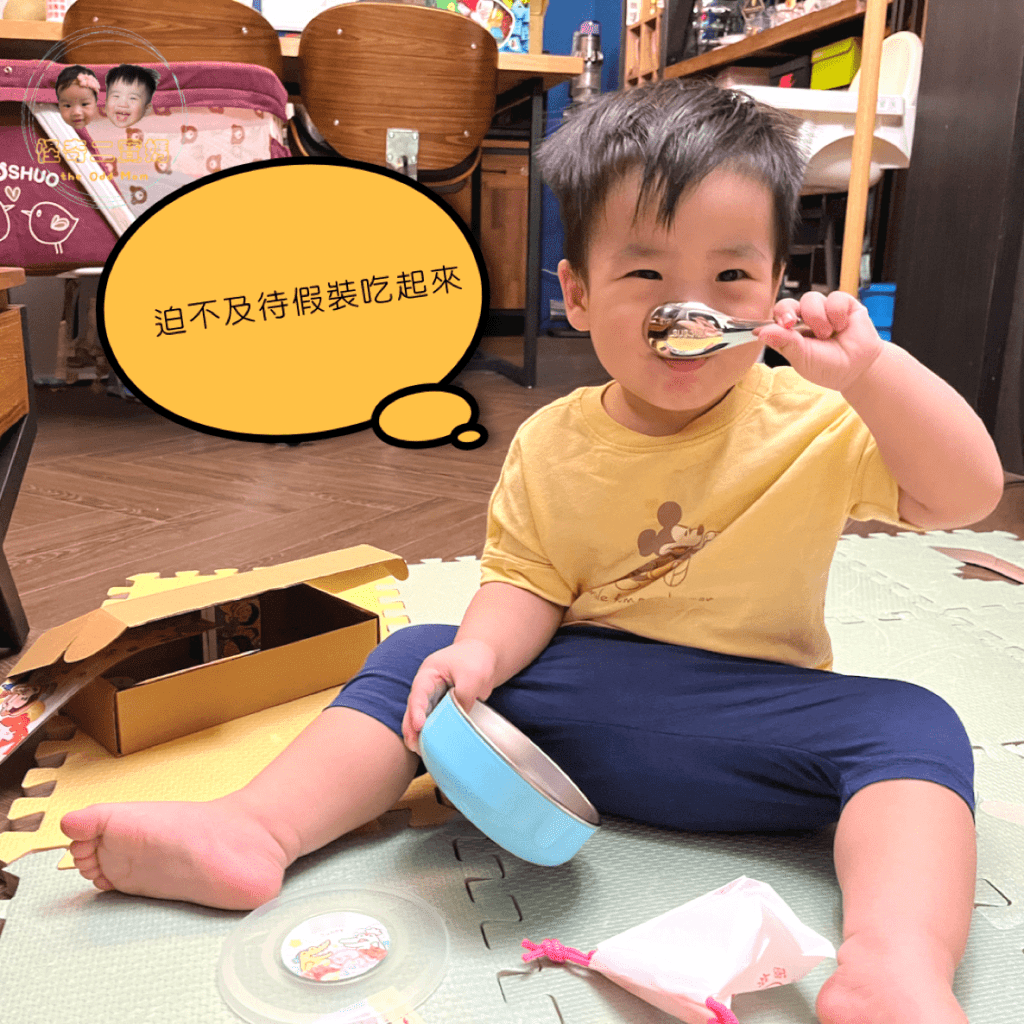 大寶剛拿到時就迫不及待表演吃飯啦~